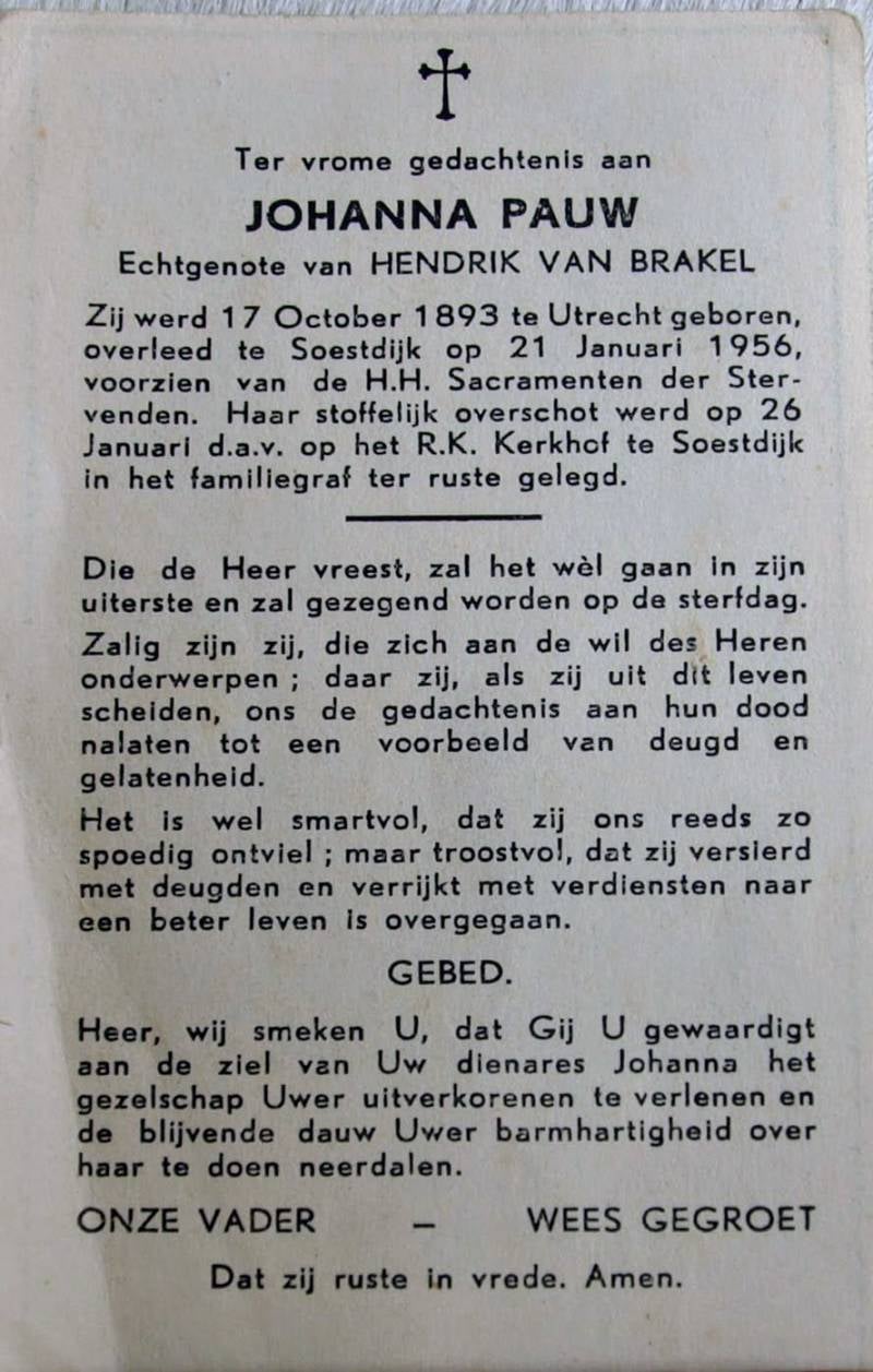 XX XX Mathilda (Tilly) Petronella Maria *05-10-1919 Tilburg +16-02-2013 Tilburg, 93 jaar oud, gehuwd met Johannes Petrus Wilhelmus van Soest *30-12-1925 Tilburg +28-06-1998 Tilburg.