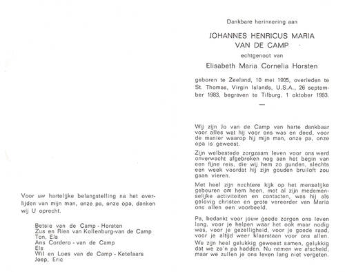 Mathilda (Tilly) Petronella Maria *05-10-1919 Tilburg +16-02-2013 Tilburg, 93 jaar oud, gehuwd met Johannes Petrus Wilhelmus van Soest *30-12-1925 Tilburg +28-06-1998 Tilburg