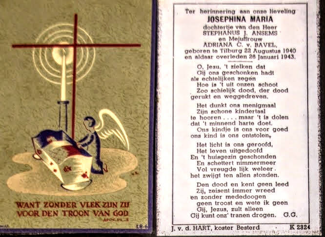 X X Josephina Petronella Maria van Bavel *04-03-1920 Tilburg +06-11-1920 Tilburg, 8 maanden oud.
