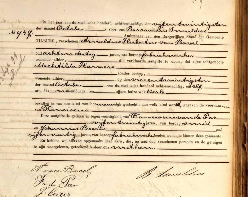 Arnoldus had 11 kinderen waaronder Franciscus. Franciscus (24 oktober) en mijn opa Petrus (30 mei) zijn van hetzelfde geboortejaar 1988. Zie onderaan de pagina het genealogisch overzicht.