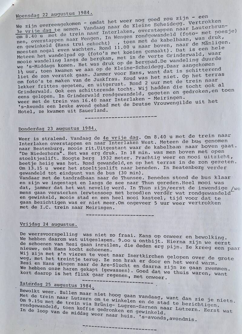 Foto's van de vakantie in Zwitserland in 1984