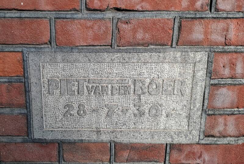 De familie van mijn vrouw had weer contact met de zus van Jo, Trees van de Put. Ook hier werd Trees aangesproken met 'Trees Put'. Piet was enige zoon, en was in het bezit van een aantal panden die hij verhuurden. Zijn ouders hebben o.a. gewoond in de Lange Schijfstraat 71, wat later de Noordhoekring werd. Hieronder zie je een gedenksteen van Piet van den Boer in de muur van het huis Noordhoekring 77. Toevallig? Of toch een verwijzing naar onze Piet, ik heb het niet kunnen achterhalen, er waren in die tijd meer personen met de naam Piet van den Boer. Trees en Piet hadden geen kinderen, en vaak spraken ze over broer Antoon en zus Wies. Ze waren thuis met vier kinderen.