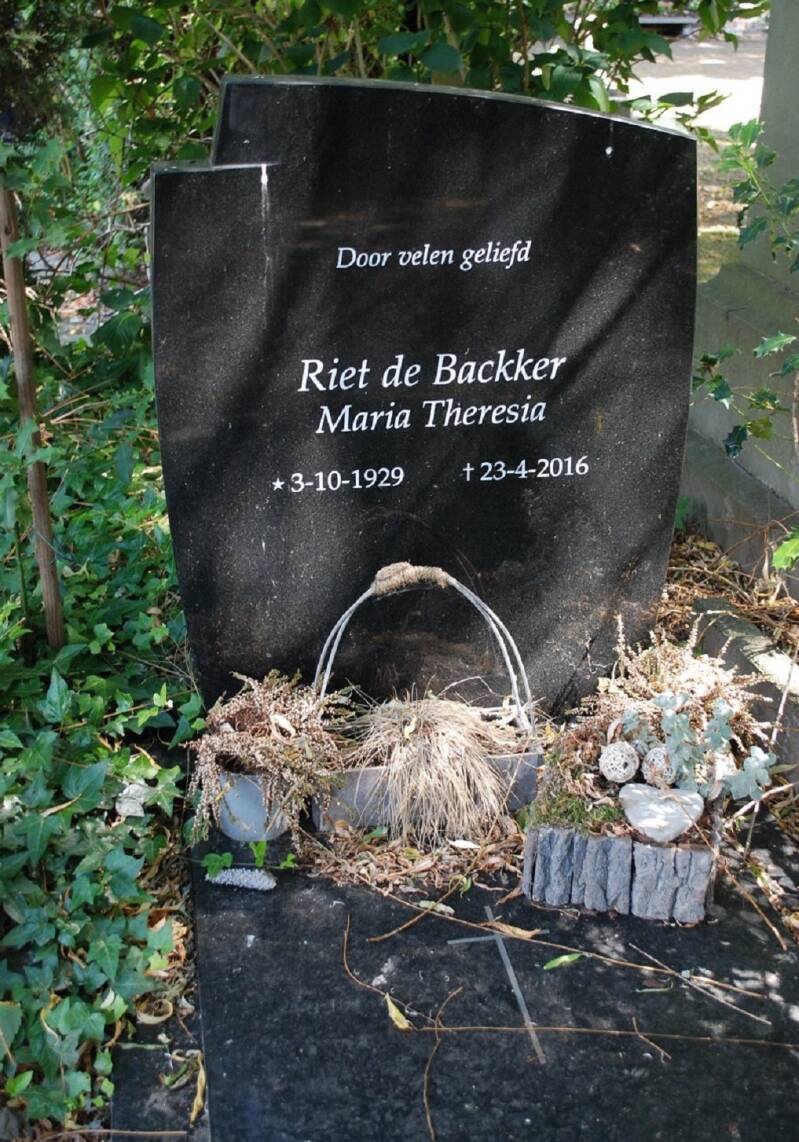 Riet de Backker, een tante van mijn vrouw, is het onderwerp van dit verhaal. Riet is ondertussen overleden (2016), en is nooit getrouwd geweest. Toen onze kinderen klein waren trok ze veel met ons op. Veel jaren later gaf mijn schoonmoeder, en een zus van Riet, naar me aan dat ze altijd in de veronderstelling is geweest dat Riet me indertijd tot haar executeur-testamentair had benoemd. En dat dat de reden was waarom ze zoveel met ons optrok. Ja, mijn schoonmoeder kon uit de hoek komen.
