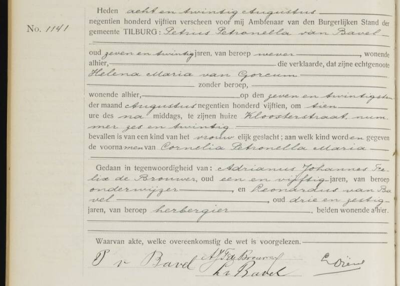 Geboorteakte Petrus van Bavel