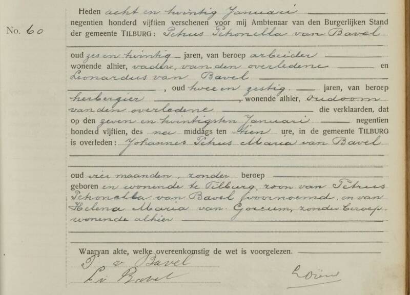 Persoonlijke gegevens Johannes Petrus Maria van Bavel