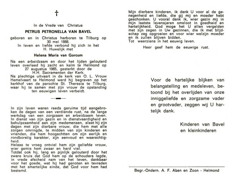 Petrus van Bavel *30-05-1888 +27-08-1965