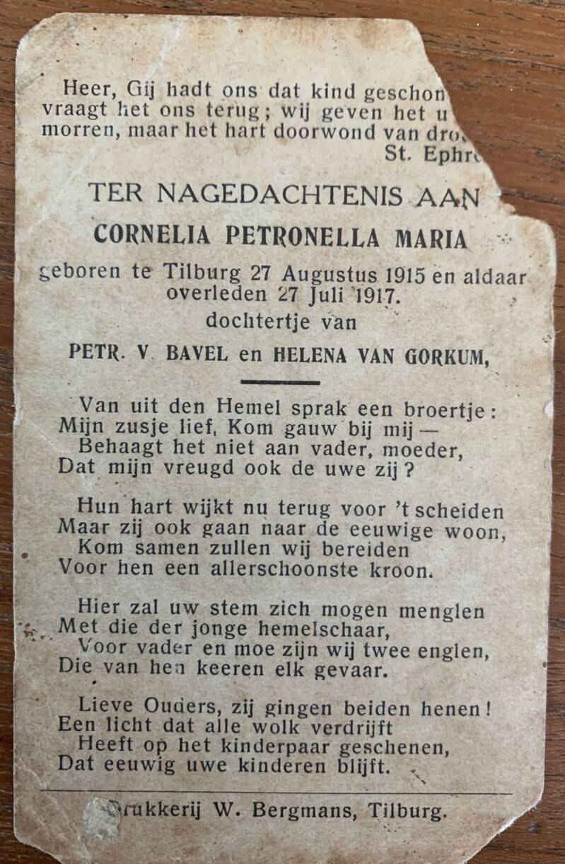 - Cornelia Petronella Maria *27-08-1915 +27-07-1917, 23 maanden oud