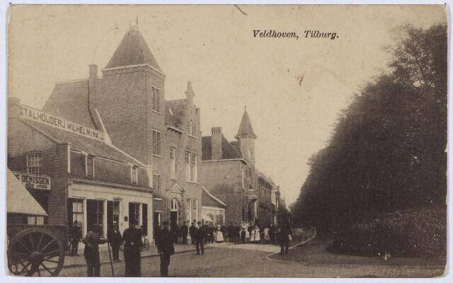 Het Wilhelminapark aan de noordzijde. Links stalhouderij Wilhelmina, tot 1910 nr. K 230, daarna Wilhelminapark nr. 127. Voor 1911 woonde in dit pand 'mécanicien' Ludovicus van Riel, geboren te Ginneken in 1839. Hij verhuisde in december 1910 naar Dongen. De volgende bewoner was Johannes Joseph Denissen, geboren te Tilburg op 3 april 1872. De ouders van Denissen waren Kees Denissen, geboren te Oirschot, en Johanna Zegers. Kees was voerman en herbergier in 'het Noord-Brabants Koffiehuis' aan de Noordstraat, toen hij in 1883 een lijkwagen aanschafte. Hij beloofde zijn klanten 'een prompte bediening'.