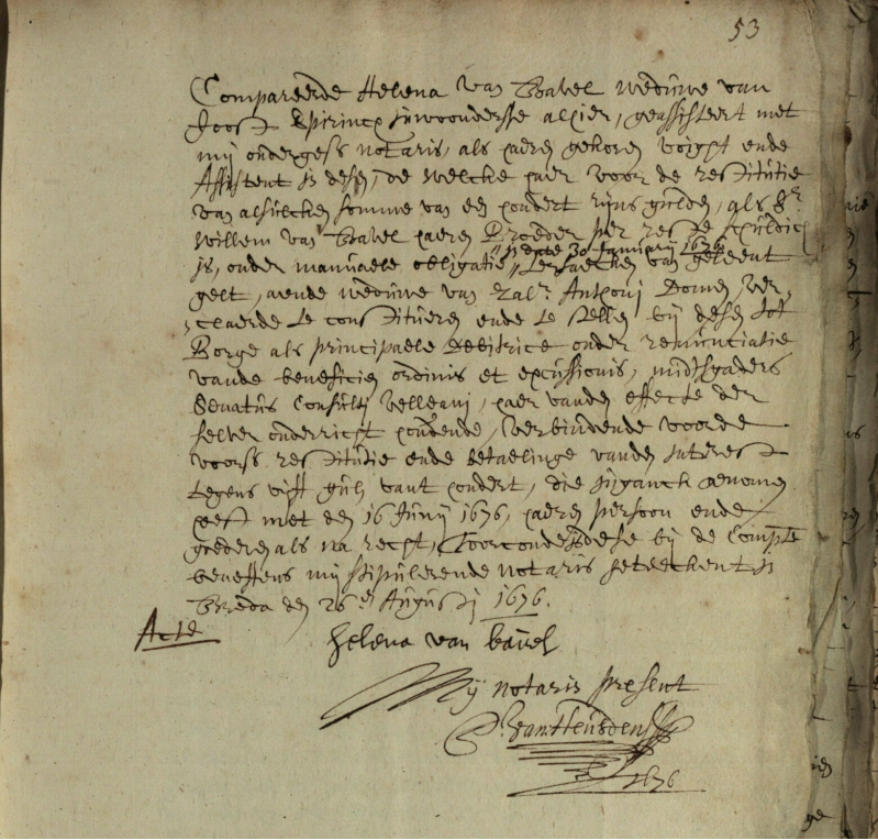 Ene Cornelis van Bavel uit Breda wordt in drie aktes tussen 12 en 21 juli 1561 genoemd als stadhouder.