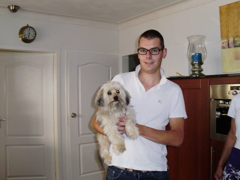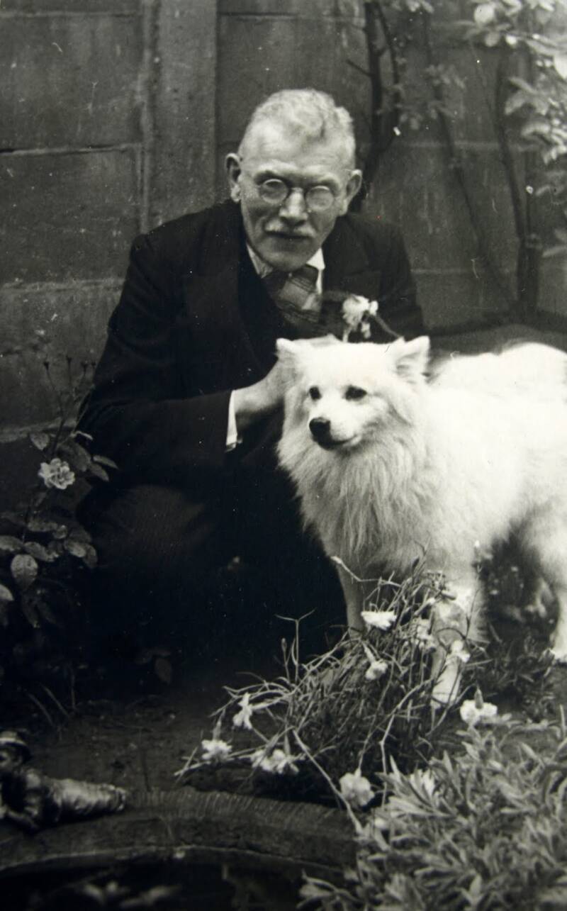 Hierboven opa met zijn witte keeshond waarvan ik helaas de naam niet weet.