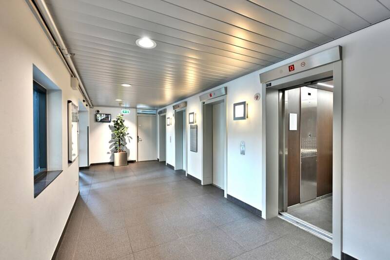 Fraaie en beveiligde entree met brievenbussen en videofooninstallatie. Imposante ontvangsthal van 11 meter hoog. Deze indrukwekkende ruimte wordt doorgaans gebruikt voor informele bijeenkomsten van de bewoners maar ook voor diverse tentoonstellingen. Toegang tot de 4 snelle liften, de algemene containerruimte, de diverse gemeenschappelijke fietsenstallingen alsmede de parkeergarage (bestaande uit 4 verdiepingen). In de kelder heeft u de beschikking over een eigen ruime berging en een tweetal eigen parkeerplekken. Deze laatste zijn ook nog eens ideaal gelegen.