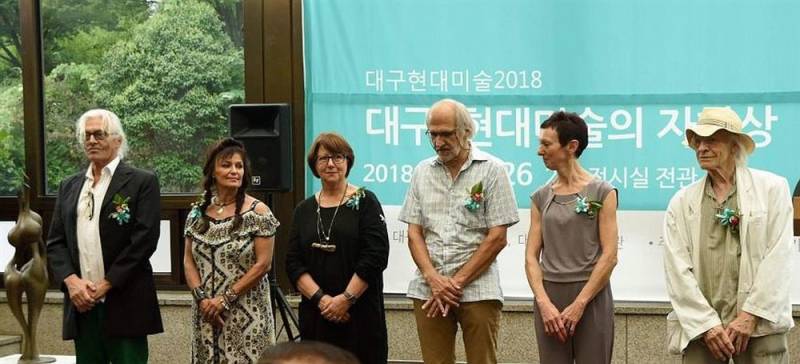 Mijn thema is EGO, ik heb daar een beeld staan met een performance, de Koreanen laten de expositie "groeien" door werk te maken tijdens de expositieperiode. Mooi dat het werk, onbedoeld overigens, samenvalt met wat ik zelf exposeer.