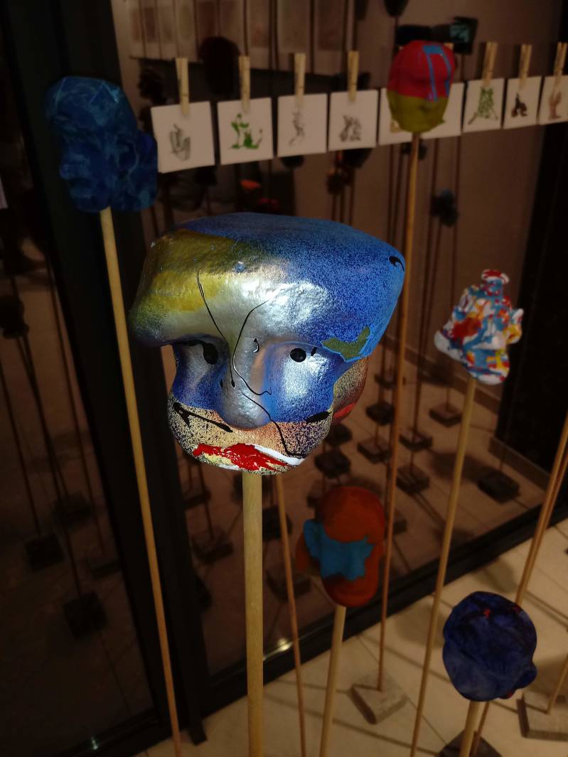 Naast zijn collectie koppen maakt hij ook ‘mannetjes’, kleinere ludieke figuren die de toeschouwer aan het glimlachen maken, maar onder de vrolijke kleuren en vormen gaan hele andere emoties schuil voor wie de moed heeft deze te willen zien.