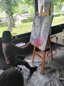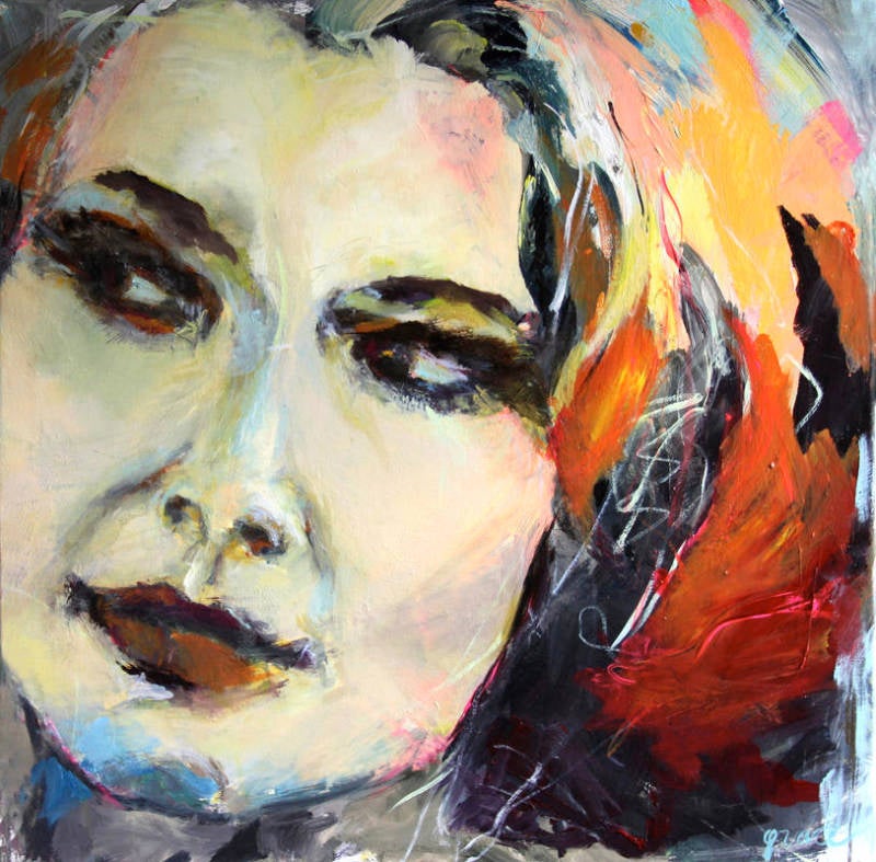 Ook abstracte portretten maken deel uit van haar werk.