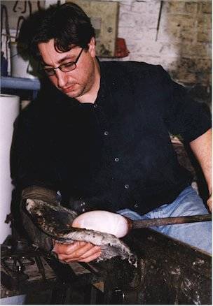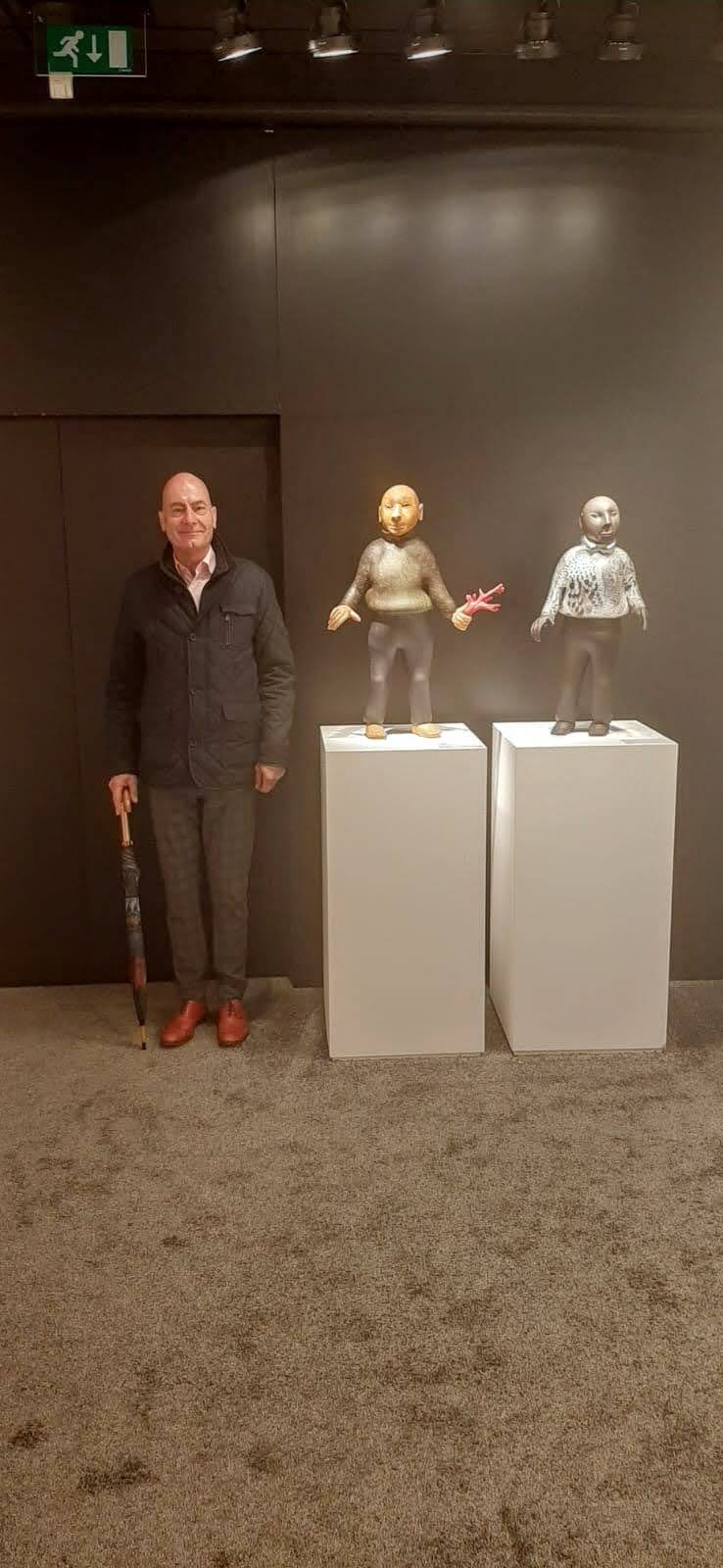 Giampaolo studeerde bij José Vermeersch, de glasblaas-kunst zit hem in de genen. Het uiterlijk van de kop staat centraal in zijn oeuvre: ‘Het rad der zinnen’. Daarnaast maakt hij ook kluchtige, bizarre manfiguren. Virtuoos gemodelleerd in glas.