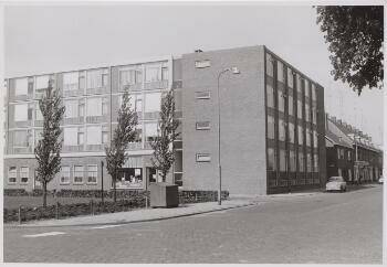 Het langgerekte pand was slechts van twee zijden te benaderen. Namelijk vanaf de Nieuwlandstraat en vanaf de Schoolstraat.