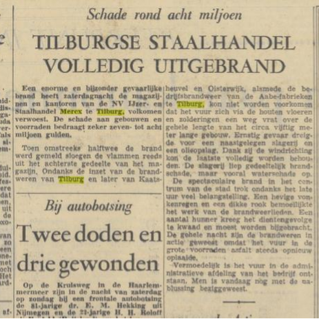 De brand van ijzer- en staalhandel Mercx in de Nieuwlandstraat 45, op 16 mei 1965, staat elke Tilburger van toen in het geheugen gegrift. Mijn vader was toen werkzaam bij Mercx als magazijnbediende.