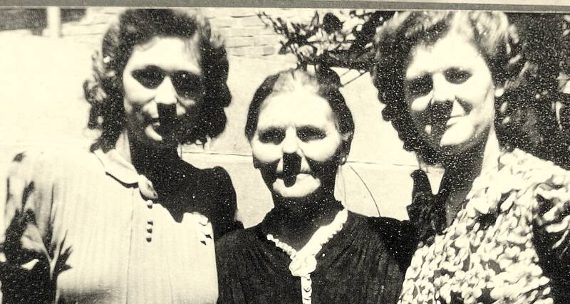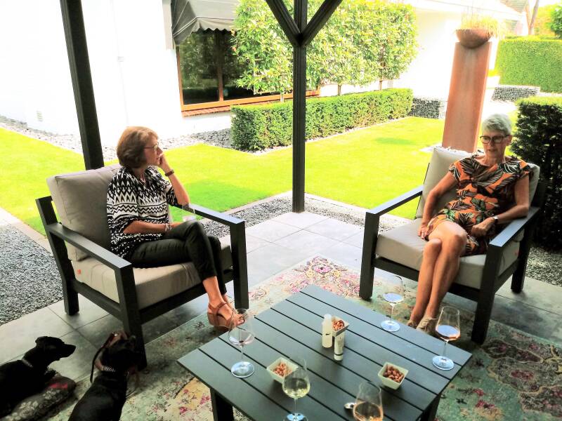 Moeder met wit kraagje in het midden, rechts van haar vriendin Lisa