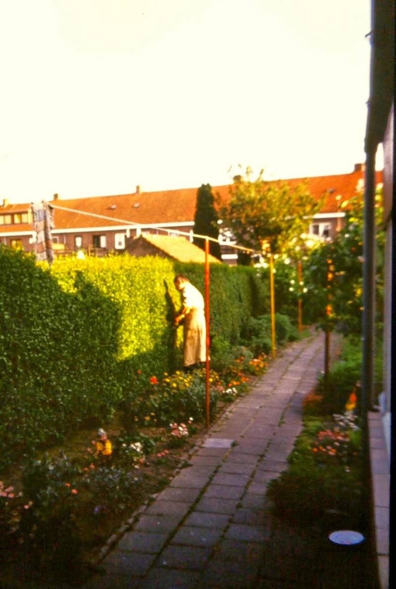 Ons vader was een hele preutse man, als je op de ouderslaapkamer kwam, dan werd je linea recta teruggestuurd. We hadden er niets te zoeken, wegwezen! Ik heb bij die beste man nooit, een bloot been gezien. Wel zijn blote bast, maar dat was, 2x per jaar, bij het knippen van de heg. Een heg van 28 meter en 20 cm. En dan graag de nadruk op die 20 cm. Op school had ik namelijk een discussie met een klasgenoot, die weigerde te accepteren dat wij een grote tuin hadden. Meteen de daad bij het woord gevoegd en tussen de middag heb ik de tuin opgemeten. Omdat mijn vader ook altijd de heg aan de kant van de buren, familie van de Wiel, moest knippen, werd het dus bijna 60 meter haag knippen. Ga daar tegenwoordig, maar aanstaan.