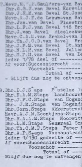 Deel overzicht erfenisverdeling onder de families