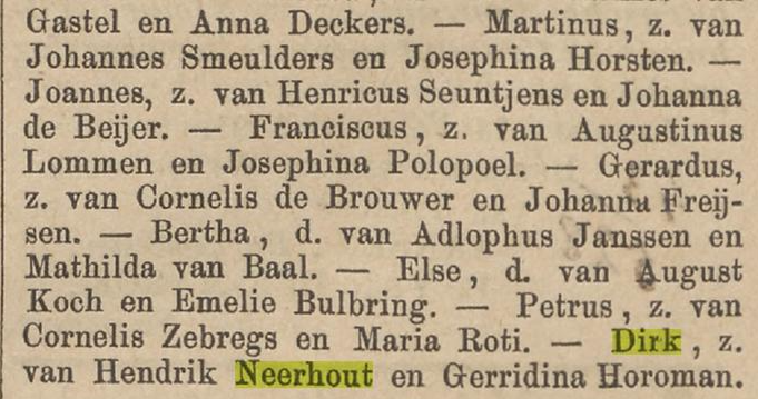 Nieuwe Tilburgsche Courant 19-02-1891 Geboren Dirk Neerhout